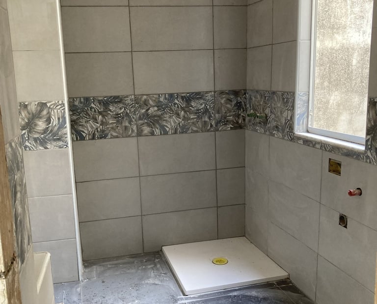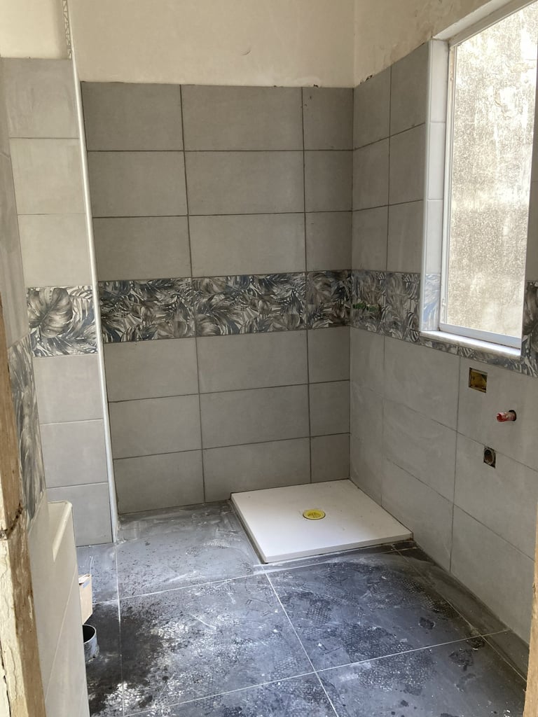 Die Fliesenarbeiten sind fast abgeschlossen.